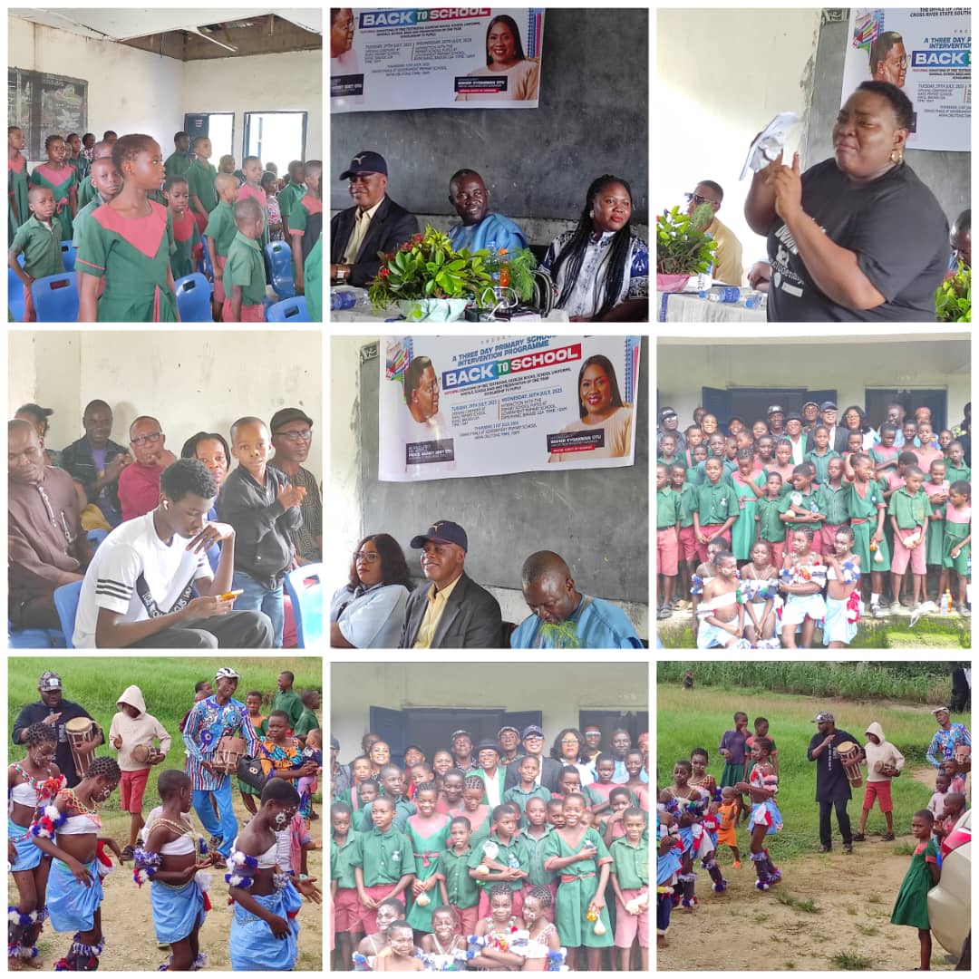 Odiong, who hails from the community, partnered with the Office of the Wife of the Governor, Bishop Eyoanwan Otu, to distribute branded exercise books and educational materials to pupils. The programme will also feature health talks, mentorship sessions, and community engagement to curb child abuse, drug use, and other social ills.